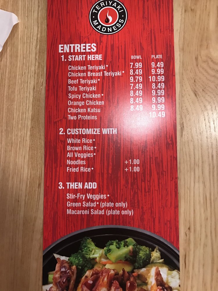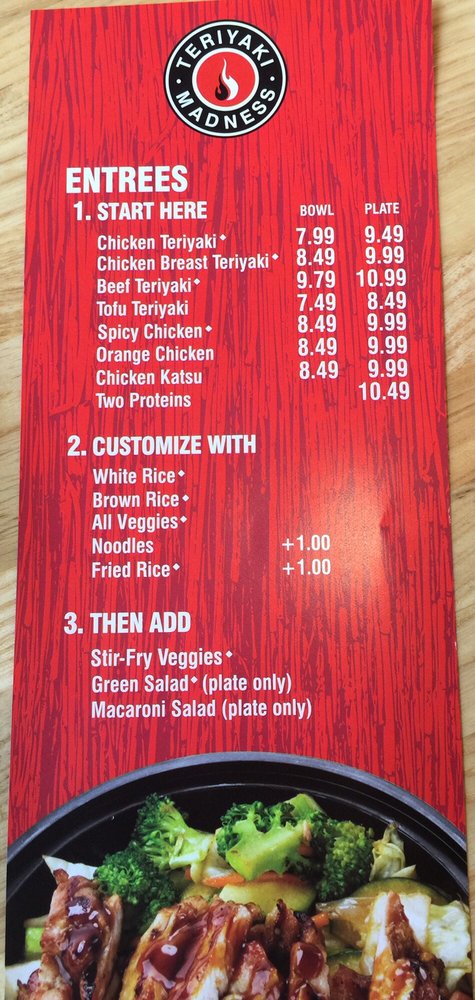 A whole new flavor (and level of heat)! This is not just our famous spicy chicken teriyaki with the volume turned up, this is a whole new bowl! Our fresh chicken teriyaki is first wok-tossed with our signature spicy sauce and then wok-tossed with our signature MAD SAUCE and placed on your choice of white rice, brown rice, fried rice or noodles and includes stir-fry veggies!